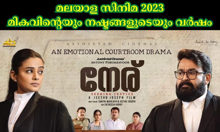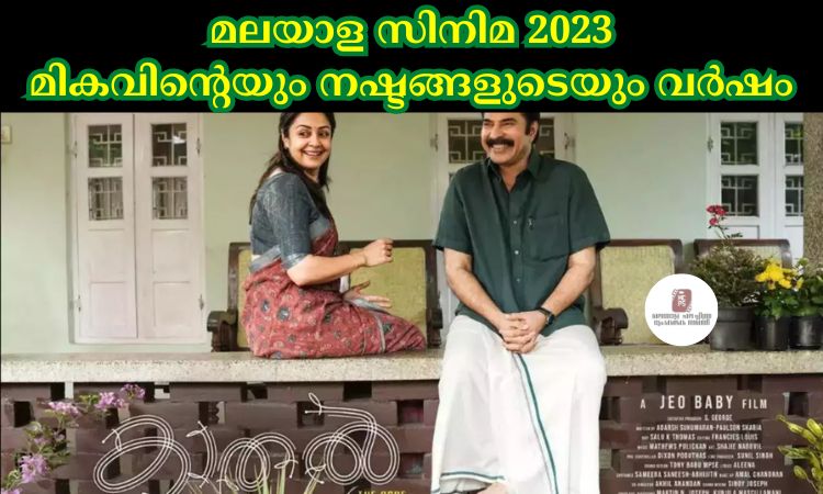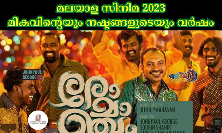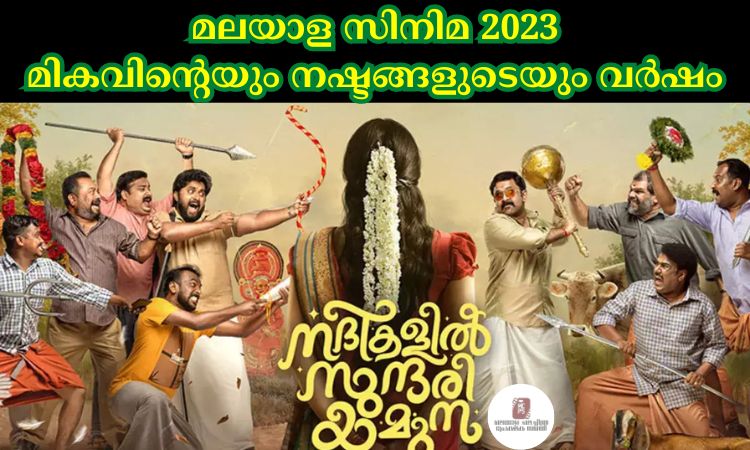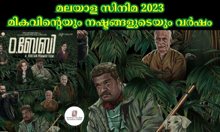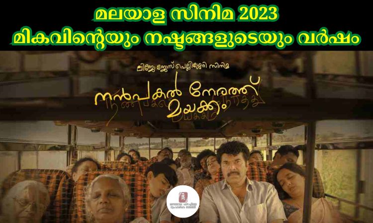 2022 December അവസാന വാരത്തിൽ തുടങ്ങിയ മാളികപുറത്തിന്റെ വിജയ കഥ രചിച്ചത് 2023 ജനുവരിയിലാണ്. 100 കോടി ക്ലബിലെത്തിയ ഈ ചിത്രം 2023 ലെ ഈ റിപ്പോർട്ടിൽ ഉൾപ്പെടുത്തുന്നില്ല. ജിന്നായിരുന്നു ഈ വർഷം തീയേറ്ററിലെത്തിയ ആദ്യ സിനിമ . നൻപകൽ നേരത്ത് മയക്കം, എലോൺ അടക്കം 15 സിനിമകൾ എല്ലാ ചിത്രങ്ങളും തീയേറ്റർ കണക്കിൽ പരാജയങ്ങളായിരുന്നു. എങ്കിലും നൻപകൽ നേരത്ത് മയക്കം തീയേറ്റർ, OTT കണക്കിൽ ആവറേജ് വിജയമായി കണക്കാക്കാം മമ്മൂട്ടിക്ക് മികച്ച നടനുള്ള അവാർഡ് നേടി കൊടുത്ത ഈ സിനിമ നിരൂപക പ്രശംസയും നേടി മോഹൻലാലിന്റെ സിനിമ ജീവിതത്തിലെ ഏറ്റവും വലിയ പരാജയത്തിൽ ഒന്നായി എലോൺ